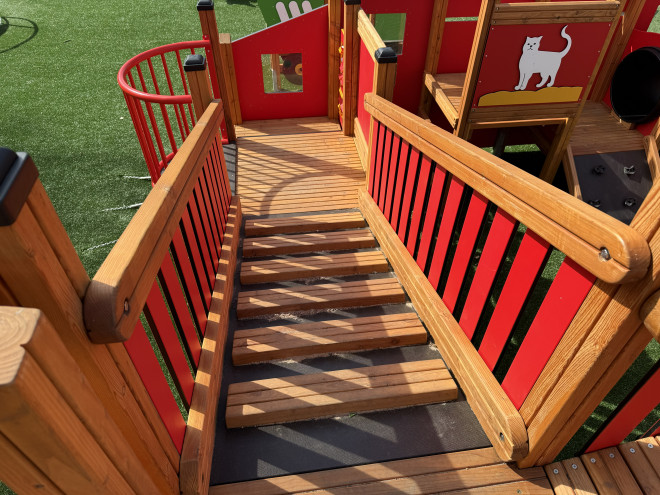 Ihrisko je navrhnuté pre deti od troch rokov a spĺňa všetky bezpečnostné štandardy vrátane odporúčaných nárokov na pádovú plochu. S platformami v rôznych výškach a kritickou výškou pádu do 175 cm poskytuje bezpečné prostredie pre rozmanité pohybové aktivity, ktoré rozvíjajú motoriku a koordináciu.