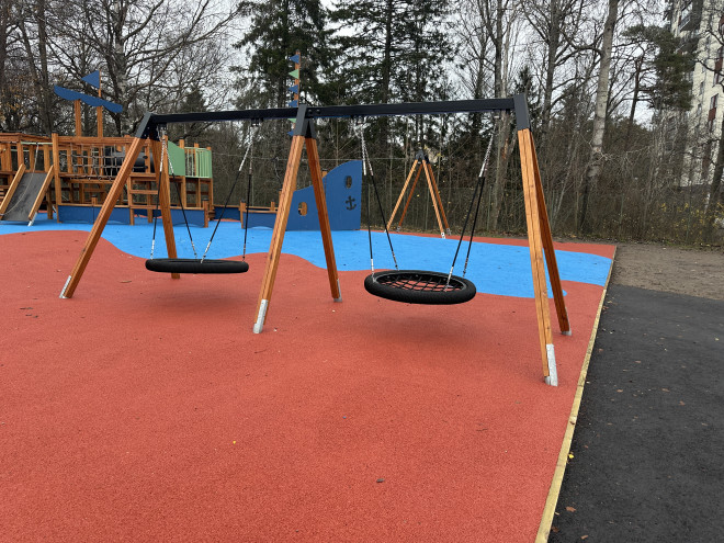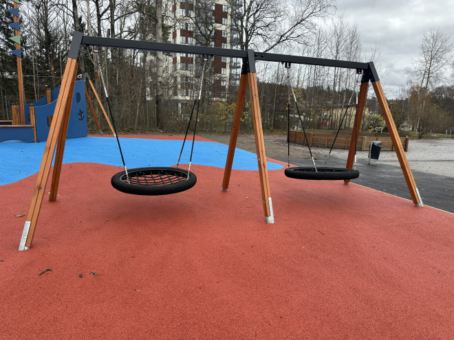 Double Bay Wooden Swing w/ Bird Nest Seats (⌀ 120 cm) prináša jedinečný zážitok z hojdania pre deti od dvoch rokov. Táto robustná a esteticky príjemná dvojitá hojdačka ponúka dostatok priestoru na spoločné hry a rozvíjanie motoriky v bezpečnom vonkajšom prostredí.