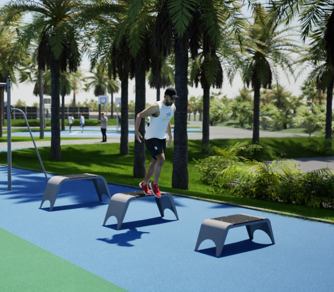 Fitness Step (Metal) High je robustný a funkčný doplnok do vonkajších fitness zón, ktorý podporuje rozvoj vytrvalosti a svalovej sily.