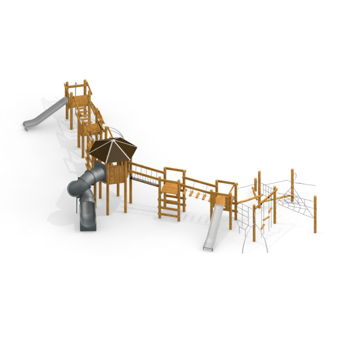 Khumbu je unikátna herná zostava, ktorá prináša deťom možnosť objavovať, šplhať sa a rozvíjať pohybové schopnosti v prostredí navodzujúcom prírodnú atmosféru. Tento multifunkčný prvok spája moderný dizajn s kvalitnými prírodnými materiálmi a ponúka ideálne miesto pre aktívne trávenie voľného času na čerstvom vzduchu.
