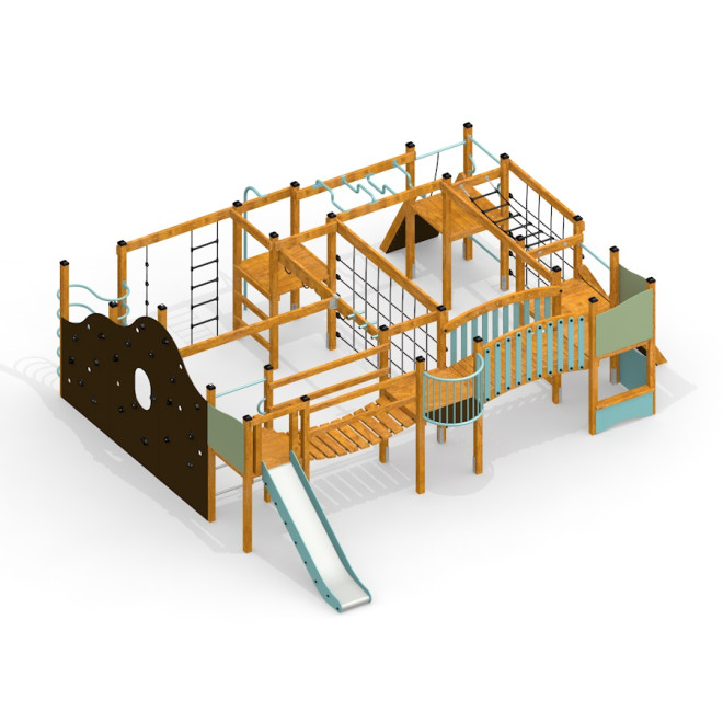King-Kong Nature je unikátne multifunkčné ihrisko, ktoré poskytuje nekonečné možnosti zábavy a rozvoja pohybových zručností pre deti od 3 rokov. Jeho dizajn v prírodnom štýle harmonicky zapadne do každej vonkajšej rekreačnej oblasti.