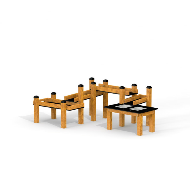Tento herný prvok je ideálny pre parky, škôlky či rodinné záhrady, kde podporuje rozvoj detskej predstavivosti, sociálnych zručností a fyzickej aktivity. Jeho prírodný dizajn a robustná konštrukcia vytvárajú príjemné a inšpiratívne prostredie pre spoločnú hru.