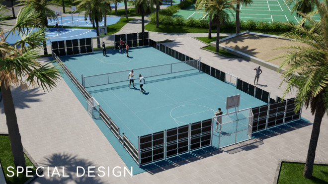 Ideálne športové riešenie pre mestské parky, školy alebo komunitné centrá, kde podporuje rozvoj športových zručností a tímovej spolupráce. Multifunkčné ihrisko umožňuje rôzne druhy športov, čo zvyšuje jeho využiteľnosť a atraktivitu pre širokú verejnosť.