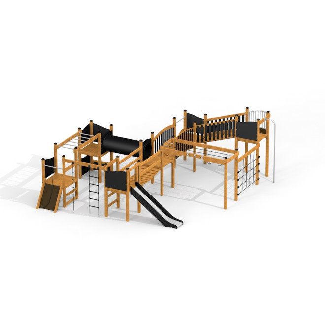 Tento multifunkčný herný prvok je ideálny pre detské ihriská, parky a školské areály, kde podporuje fyzický rozvoj a kreativitu detí. Kombinácia šmykľaviek, lanových prekážok a prechodov umožňuje rôznorodé aktivity, ktoré rozvíjajú koordináciu, silu a tímovú spoluprácu. Prírodné materiály navyše harmonicky zapadnú do zelenej plochy, čím vytvárajú príjemné prostredie pre zábavu i relax.
